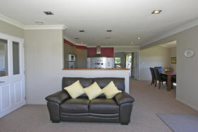 This near new sun-drenched home has spacious living with superb indoor-outdoor flow and western mountain views. Over 1/2 acre of established gardens, running out to farmland. The 3 double bedroom home with internal access offers 2 living areas, partial ensuite, logburner and large deck. There is also a separate office - ideal for working from home. Situated down an exclusive private lane, this property is a must to view.