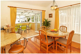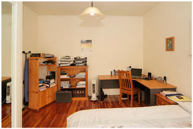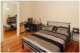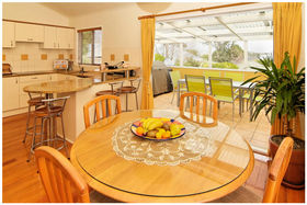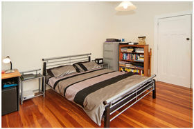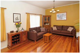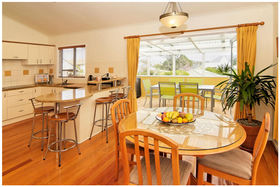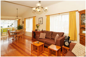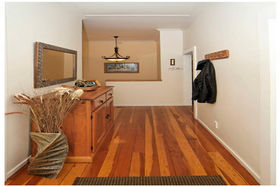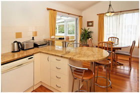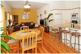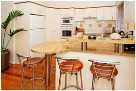 * Designer kitchen with granite bench top, polished wooden floors, high stud ceilings.