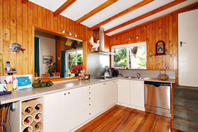 Nestled in a secluded setting surrounded by birdlife you may think you're in another world. Built in the 1970's with high ceilings, parquee flooring and open plan design - many a good gathering has been had here.