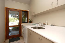 Underfloor heating in bathrooms and the kitchen, plus a Warmington fireplace and a heat pump keep this home cosy throughout the cooler months.