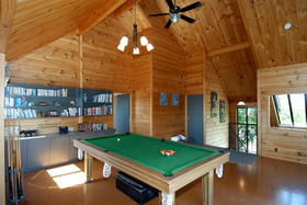 The home was built in the early 1990s and is a blend of cedar and brick. Spacious informal living and dining combines with an open plan kitchen, all accessible to the sunny northern terrace through French doors. A more formal living area opens onto the western terrace to catch the last of the sun before you light the outdoor fire.