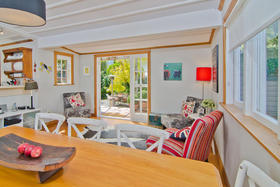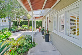 There are three double bedrooms and a charming formal lounge with original fireplace. The kitchen area has lovely Whitney windows opening out towards the garden plus flows through to your dining and family area, where French doors provide seamless indoor/outdoor flow to the north facing deck.