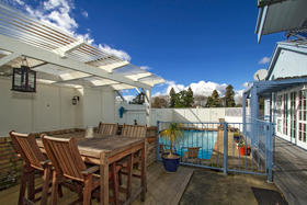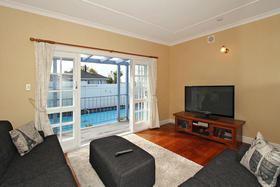 A renovated kitchen, dining and family room offer comfortable living and a separate light sunny lounge opens through French doors onto a sunny paved outdoor entertainment area with in-ground pool fenced for privacy.