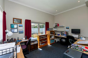 Double car garaging with a large office at the rear this could be used as a 4th bedroom or perhaps a children's lounge. Gas heating and infinity hot water