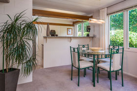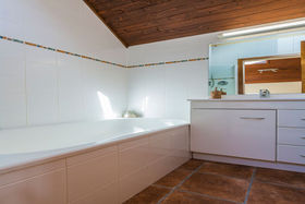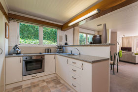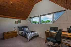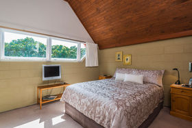 The overall design is functional, utilising space effectively. Upstairs has two double bedrooms with high pitched ceilings, this time using the wood panelling to deliver a rustic charm. You'll also find the bathroom and a separate toilet on this floor. Ample storage is available under the stairs plus in the shed behind the double carport.