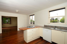 The entrance hall welcomes you in with polished native wood floors, a feature throughout. Large kitchen/dining space flows through to living room which opens onto a generous north-facing patio. Functional, bright/light family bathroom.