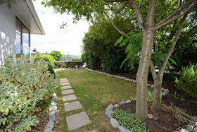 Out back is a large patio living area perfect for summer entertaining and BBQ's. Backyard is fully fenced and ideal for children. Double car garaging with power and extensive off-street parking. Road frontage is hidden by mature trees and hedge.