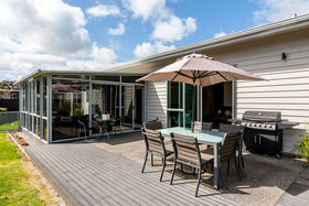 Four bedrooms, 2 feature ensuites and walk-in wardrobes, three living areas and a separate sleep out with a walk-in wardrobe.