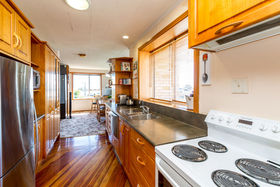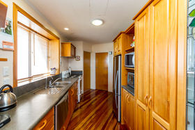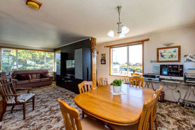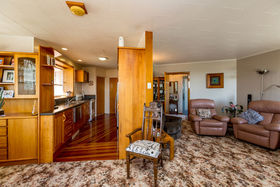 The elevated home features a quality timber kitchen, good living space with a nice outlook, central gas heating, a garage underneath and a large separate workshop but the real bonus is the spacious room upstairs which offers wonderful port- and mountain views.