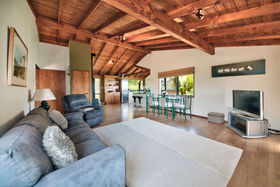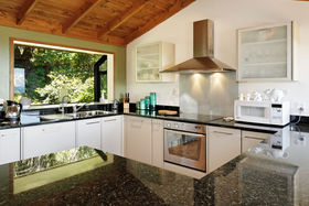 This is an immaculate modern home with peace, quiet and privacy situated in a quiet cul-de-sac with a private garden backing onto native bush. The sea views are stunning and can never be built out. The spacious lounge and dining room opens onto the enormous wrap-around deck and is ideal for entertaining. Enjoy the designer kitchen with granite bench top and all mod cons plus lovely views of Lion rock. There are two double bedrooms both with built in wardrobes. The master opens onto the deck and has magnificent sea views. The home comes with a luxury fully tiled bathroom, under floor heating and door-less walk-in shower (big enough for two). There is off street parking for three cars (tandem). If you don't want to walk you can drive to the beach in less than two minutes. The house price includes all contents. All of the work has been done just move straight in and relax