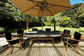 There are generous bedrooms (master is huge) opening to the outdoors. The main bathroom on the lower level has bath and separate shower and there is a second shower/WC combo on the upper level (external access). This is a great entertainer with fantastic indoor/outdoor flow to a generous patio and an extensive and sheltered lawn framed by trees.