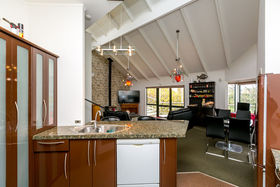 Living areas are open plan and flow to the outdoor deck, perfect for entertaining guests. The kitchen is modern, the matching fridge/freezer is included.