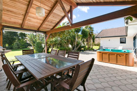 Designed for entertaining, the home also has an outdoor Cabana, to provide shelter, and to enjoy alfresco dining with friends and family. Plus, there is even a built in pizza oven, and lots of room for a large outdoor table, the BBQ and a gas patio heater as well.