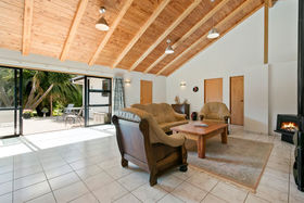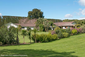 Expansive lawns, native and exotic plantings and mature trees grace the grounds. And to complete the picture, a stand of majestic Puriri trees and a rocky bottom river on a neighbouring property, add a special charm to the ambience of this country residence.