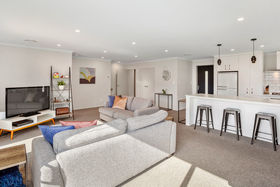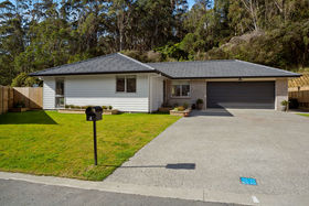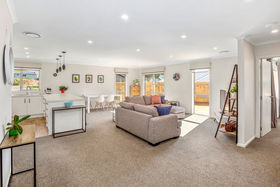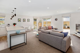 The home has three bedrooms, including a master with ensuite and walk-in wardrobe; an open plan kitchen and living area that opens out to a sunny deck. The internal double garage is fully insulated and carpeted - providing extra living or sleeping space when required, and contains added loft storage.