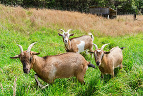 • Below the house the land gently slopes away to fenced paddocks that cover a bit more than half an acre (0.25ha), complete with chicken coop & goat shed.