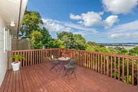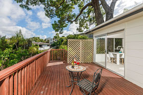 This cutie is located in one of the finest streets in the coastal suburb of Beach Haven. Elevated, it is also private with wide spectacular views out to the waters, Upper Harbour and Waitakere. A dear starter home with open plan living with 2 bedrooms and a third bedroom/rumpus downstairs with a separate entrance as well. Brand new carpet throughout. Relax and chill out on one of the two sunny decks while enjoying endless amazing sunsets surrounded by trees and bush. Rear garden space and storage area under the house. It's zoned in the high decile Kauri Park school and Birkenhead College.