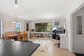 Upon entering the front door, you find yourself in a small foyer that leads to the hub of the home. This main area is a large open space that combines the kitchen, dining, and family room. The kitchen is modern and functional with plenty of counter space and cupboards. The dining will accommodate a large table for family gatherings plus there is built in storage and office facilities. In addition, there is a separate lounge.