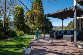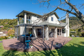 Other practical features for comfort and peace of mind include three heat pumps, HRV and some underfloor heating plus security cameras. Extra generous three car garaging and workshop area plus walk-through storage beneath the home and a woodshed provide extra appeal.