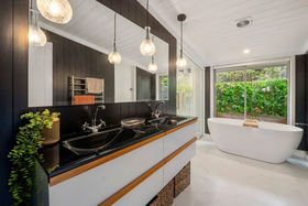 Set on just over 1 hectare of lush rolling land this retreat is a stunning blend of fantastic mid century architecture carefully brought to life through a detailed design lens. The owners attention to detail has created not only a renovation of the highest quality but a home imbued with hard to find character that enhances its magical setting and delivers a lifestyle of ease with a twist of fun.