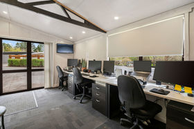 The master suite enjoys a lush north westerly outlook, a bespoke ensuite overlooking a private fernery and a dressing room that is a dream. From the dressing room there is access to a conservatory that is currently utilized as a home gym space.