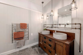 The high stud open plan living space oversees the tranquil outlook as paddocks meander down to the crystal clear trout stream. There is outdoor living in abundance and a picturesque yet practical stable door links the luxurious kitchen to the barbeque courtyard which is also accessed off the lounge.