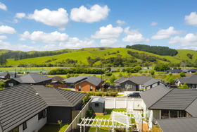 Discover effortless modern living at 5 Awa Avenue, Helensville - a stylish 2020s built four bedroom, two bathroom home in the highly sought after Parkview development. Perfectly positioned in an elevated spot, this property's standout feature is the impressive outlook to the Mckenzie Hills. The home's welcoming street presence is enhanced by its accented front pillars, adding a touch of character and modern elegance to the exterior.