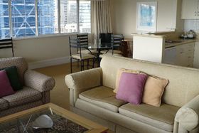 Located on the 7th floor this fully furnished two bedroom, two bathroom apartment enjoys fantastic northerly views of the harbour activity and across to Devonport and Rangitoto.