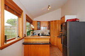 Features include: Three bedrooms, open plan living, entertainers deck, off-street parking, fully fenced section, central and private.