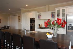 This home will impress you, from the moment you step inside to the expansive living areas with the 2.7m ceiling stud to the stunning 3.6 metre long solid oak benchtop. With over 330m2 of space, everything has been thought of here. From the formal lounge with all living opening out to the covered outdoor decking, to the 4 bedrooms, study nook, 2 bathrooms, 3 toilets, 3 car garaging, attic storage, plus extra space to create a rumpus or 5th bedroom if needed.