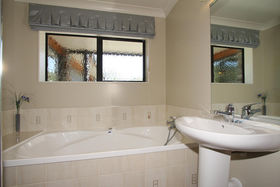 The low maintenance gardens have been thoughtfully landscaped and include a terraced water feature and a large grassed area for play.