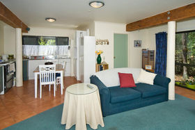overlooking the splendour of natural New Zealand bush. Downstairs you'll discover a large Rumpus and fourth bedroom for the teenagers to hang out plus Grandma will love the purpose - built sunny & warm one bedroom flat.