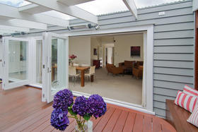 The wide hallway, high ceilings and large double bedrooms give you a sense of space with polished native timber floors leading to open plan lounge and dining area. Fabulous indoor / outdoor flow, ideal for year round entertaining is achieved with two sets of bi-fold doors opening to a sunny sheltered, expansive deck. This outdoor living space flows to beautifully maintained grounds and garden, where young children can play safely in full view from the designer kitchen. Carport/garaging completes this executive home, close to cafes, restaurants and shops and positioned for Aucklands top schools - MENPS, Kowhai, AGS, EGGS, MAGS