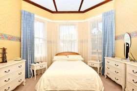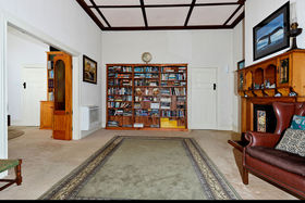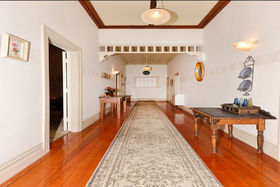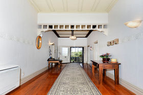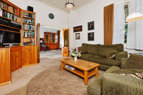Classic features of high ornate ceilings and polished timber floors, grace this home on entry from a welcoming wide front verandah, then given over to one level, a grand hallway leads to 3 large bedrooms, a spacious family bathroom, a drawing room/library, and a formal lounge. These are all served by a wonderful provincial style, designer kitchen combined dining/family room, all of which unfold effortlessly through double cedar bi-folds to a north/west facing, sun drenched, private rear verandah, courtyard with established gardens, a garden arbor positioned perfectly for that time out and wrap around, manicured lawns.