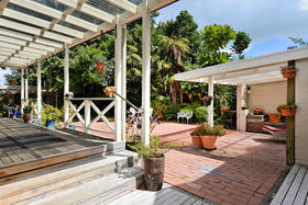 Within a skilful blend of timeless features and modern day pleasures, this home is also a host to separate guest accommodation of 2 levels or an artist studio/teenager retreat with kauri lined ceilings and a 2nd bathroom to complete. These living spaces also take advantage of an indoor/outdoor flow to a west facing, pergola covered courtyard area, combined with a single garage/ internal access and a tandem garage with a workshop, complete with plenty of off street parking.