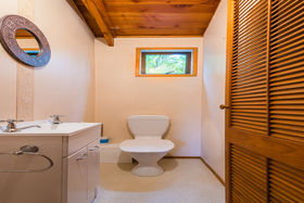 Downstairs, the open plan kitchen/ dining is the hub of the home opening out onto the deck and down to the paved outdoor entertaining area. Downstairs also includes a double bedroom, bathroom and separate lounge with cosy freestanding fire. Upstairs, two large bedrooms both featuring ample storage space (master has walk in wardrobe) plus the added convenience of a second toilet.