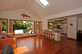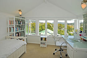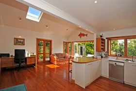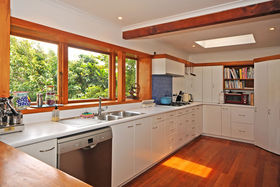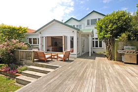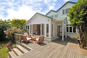 Originally a 1910 villa, but extensively renovated over the years, this ideal modern family home with great flow , bright décor , feels light and spacious . 2 storey, the entrance level comprises of a study ( or double bedroom ) master bedroom, formal lounge and dining, bathroom, casual dining and living with French doors and bi fold windows that you can throw back to open and step into a private, sheltered out door entertaining area, flat lawn, fully fenced garden bathed in sun for all seasons, facing North West . Upstairs features 4 bedrooms and a bathroom. Single garage and onsite parking , secure and gated , fully fenced, flat access, quiet cul de sac , city end Karori, zoned for all good schools.