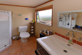 From the impressive entrance foyer the solid stair case leads you up to a landing area where you can access the 4th bedroom and the master suite. The master bedroom really is massive with views across the Monaco estuary to the Mt Arthur range, it's own little deck and a walkthrough closet and ensuite.
