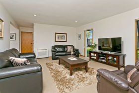 There is plenty of flat grassed area for the kids to run and play in, or if you have pets the grounds provide security and space. The ground level bedrooms are double sized and both have built in wardrobes. The main bathroom is downstairs with a bath and shower and there is a separate toilet for convenience. The double garage offers plenty of room for 2 cars and storage. Off street parking is also very good, with easy turn areas.