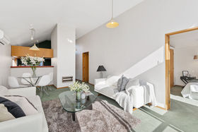 Freshly painted throughout, this property hosts two double bedrooms, a bright bathroom, plus a lovely open plan kitchen/dining/living area with vaulted ceilings and big picture windows that flood the area with natural light. Sliding doors lead you outside to the private sun-drenched patio/courtyard with fully fenced, tidy garden and the property's north-facing position transform the space into an incredible sun trap - perfect for drinks with friends. Completing the appeal is a heat pump, a Skope wall heater, lovely outlooks from every window, and a double garage plus two off-street parking spaces.