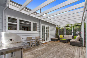 Entertaining at your place will be a breeze. The open-plan living flows into a large and sheltered, sunny patio with a pergola and awnings. There is also a tiered garden. Off the master bedroom is a large deck - great to get away from the hustle and bustle and relax in the sun.
