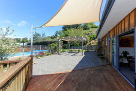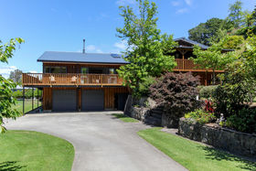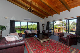 Taking pride of place is the home, with four car garaging, workshop and internal access on the ground level. The first level is the hub of the house with an an open plan layout incorporating the kitchen, dining and family room, indoor outdoor flow to wrap around decking and a fantastic view over the garden and down the valley. A generous separate lounge allows you access to the courtyard, pool area, alfresco dining and spa. A large office, separate toilet and laundry are all included on this level.