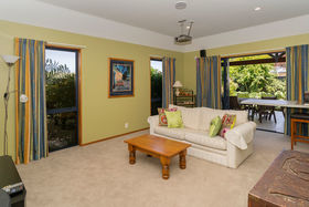 Set in a quiet residential street on a secluded section, this comfortable residence is a relaxed haven and ideal for you and yours. This lovely home comprises a stylish kitchen with quality appliances that will appeal to the family chef. A media room and generous living spaces with a log burner and HRV ensure your comfort and are perfect for family get-togethers. The master bedroom with patio doors, an ensuite and walk in wardrobe ensure sweet slumbers as do the two queen sized guest bedrooms. There's also a family bathroom, separate toilet, a well proportioned study/fourth bedroom, laundry and plenty of storage. Every room is tastefully finished with sophisticated decor, floor coverings and on-trend window treatments that provide an elegant ambiance. The garden has vegetable beds, a plentiful array of mature shrubs and trees and is perfectly manicured, with charming features such as clipped hedges, verdant lawns and flowering plants which are a delight to the eye. The sun drenched tiled terrace is deliciously private with space for the barbeque; a great place to relax and entertain, enjoying the company of friends. The double garage has storage space and there's ample additional parking on the tar sealed driveway. A short trip in the car and you're in Motueka CBD with all the amenities it has to offer; cafes, bars, shops, junior and high schools, cinemas and parks. Sandy beaches are an easy walk or bike ride away, or alternatively, travel slightly further afield and you can be in the heart of the Abel Tasman National Park in less than twenty minutes! Practically all you'll ever need on a daily basis is here and the added bonus is the main state highway is located only a couple of minutes from the front door, offering all the convenience without any of the road noise. Whatever your family commitments this modern home has so much to offer shrewd purchasers who want to enjoy life in a comfortable and convenient property.