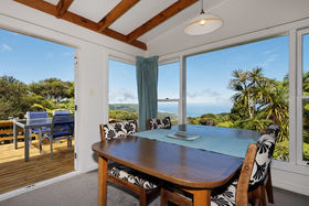 Set well back from the road this nicely presented two level home offers affordable extensive views of the surf, sea and ranges. Easy open plan living and great decking. Use as your full time abode or perfect lock and leave accommodation. Woodburner for toasty winter nights. Master bedroom boasts stunning views plus an additional room which would make for an excellent nursery, office or workroom. With a site size of 2827m2 there is plenty of scope for further development/minor dwelling. Generous off street parking completes the deal.