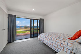 At the heart of the home is a spacious open-plan living area, complemented by a modern, well-appointed kitchen with a six-stool breakfast bar-all capturing the lake views. Sliding doors open seamlessly to an expansive lakeside deck, perfect for entertaining or simply relaxing. The master suite is privately positioned at one end of the home, complete with ensuite and walk-in wardrobe. Three further double bedrooms, each with deck access and lake views, provide plenty of space for family or guests. While also offering a well-positioned Arch Gola for those entertaining moments.