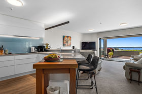 Step inside to a warm, tasteful interior where soft neutral tones and an open plan layout create an inviting sense of space and light. The living area flows effortlessly to a private patio and gardens - the perfect spot to entertain or unwind while soaking in the ever changing harbour views.