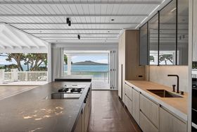 A stunning addition is the eight-seater "certified" home cinema. It is one of only two in NZ at an eye-watering seven-figure cost. All three living spaces flow seamlessly to tiled terraces (ground floor) or terraces overlooking the pool on the mid floor. The views of Rangitoto and its relationship with the water are first class.