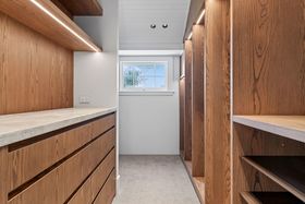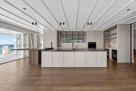 Accommodation-wise, there is a choice of up to six ensuited bedrooms plus a large home office (or five ensuited bedrooms with his and hers ensuites, walk-in robes and two private offices), leaving most families with a surplus of space to sprawl and house guests in complete style. The grand entry foyer with oak heated flooring leads to expansive living spaces framed by panoramic views of Rangitoto Island. A designer kitchen crafted by "Bremich" features a very large island, Bora induction and gas hobs, a pair of Wolf ovens, Liebherr integrated refrigeration and dual wine fridges.